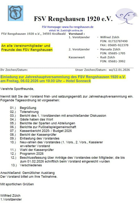 Der FSV Rengshausen wird in 2025/26 bei seinen Veranstaltungen